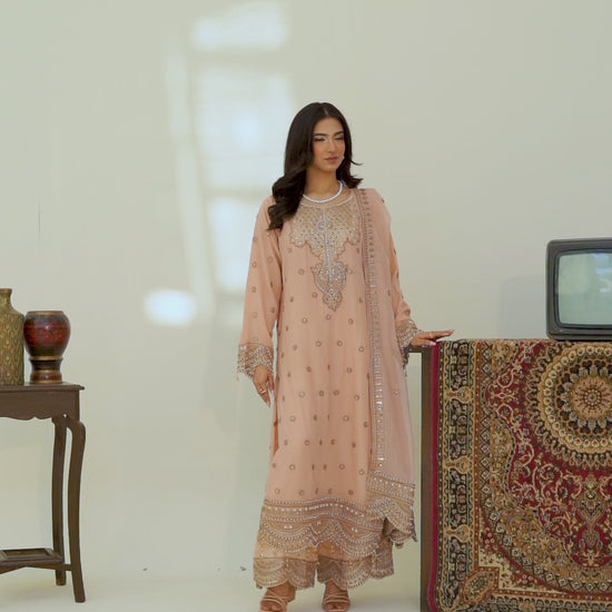 * Ready To Wear Hand Embellished And Sequins Embroidered Chiffon Shirt